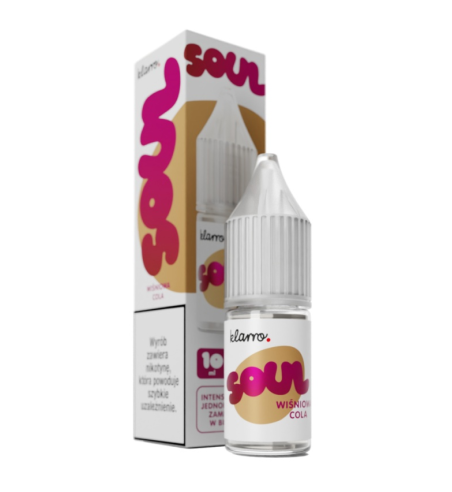 Liquid Klarro Soul 10ml 20mg Salt - Wiśniowa Cola to gotowy do użycia e-liquid, który łączy słodką, soczystą wiśnię z klasycznym smakiem orzeźwiającej coli, oferując niepowtarzalne i złożone doznania smakowe. Zawartość nikotynowych soli zapewnia szybkie i efektywne dostarczenie nikotyny, czyniąc go doskonałym wyborem dla osób pragnących doświadczyć wyjątkowej mieszanki owocowej słodyczy z delikatnym gazowanym twistem. Ten liquid to prawdziwa gratka dla miłośników wyrazistych, owocowych smaków.(+18)