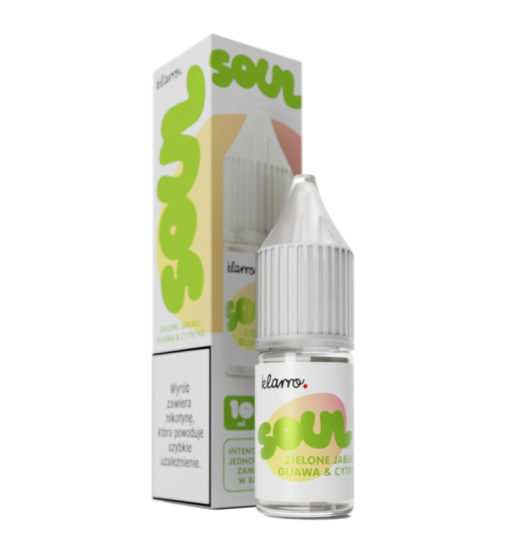 Liquid Klarro Soul 10ml 20mg Salt - Zielone Jabłko Guawa Cytryna to gotowy do użycia e-liquid, który łączy chrupiące, kwaśne zielone jabłko z egzotyczną guawą i orzeźwiającą cytryną, oferując kompleksowe i wyrafinowane doznania smakowe. Zawartość nikotynowych soli zapewnia szybkie i efektywne dostarczenie nikotyny, czyniąc go idealnym wyborem dla osób pragnących złożonego owocowego smaku z orzeźwiającym twistem. Ten liquid jest idealny dla tych, którzy cenią sobie złożone, egzotyczne kompozycje smakowe.(+18)