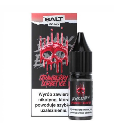 Liquid Dark Line Black Salt Strawberry Sorbet Ice 20 mg to orzeźwiający, owocowo -mentolowy płyn typu salt o smaku słodkiego truskawkowego sorbetu z intensywnym chłodzeniem (ice).