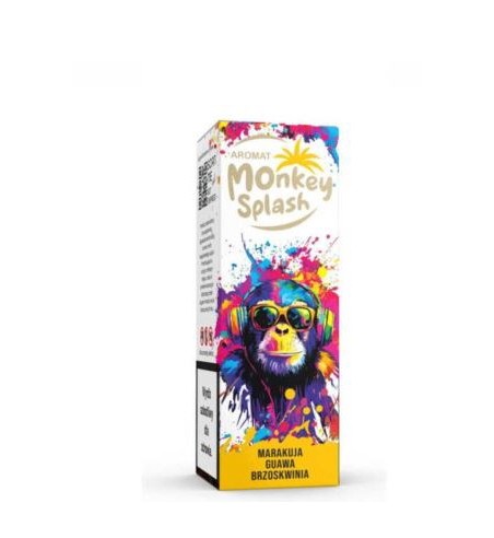 Longfill Monkey Splash Marakuja Guawa Brzoskwinia Ice to skoncentrowany aromat o pojemności 8 ml umieszczony w butelce o pojemności 10 ml. Produkt charakteryzuje się egzotycznym połączeniem smaków marakui, guawy i brzoskwini z dodatkiem chłodzika (Ice).