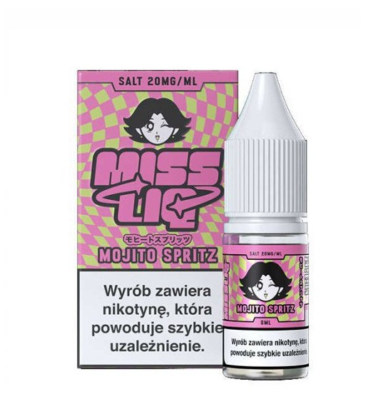 Liquid Miss Liq - Mojito Spritz (8 ml, 20 mg/ml) to orzeźwiający, gotowy do użycia liquid oparty na soli nikotynowej. Łączy smak klasycznego mojito (limonka, mięta) z lekkim, cytrusowym finiszem w stylu "spritz".