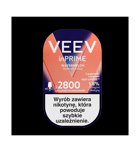 Wymienne pojemniki z płynem z nikotyną do waporyzatora VEEV inPRIME o nutach aromatycznych arbuza z mentolem.