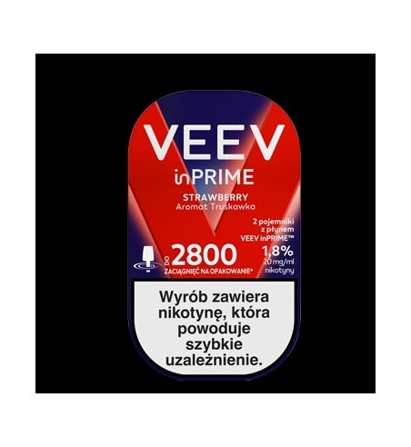 Wymienne pojemniki z płynem z nikotyną do waporyzatora VEEV inPRIME o nutach aromatycznych dojrzałej truskawki z mentolem.
